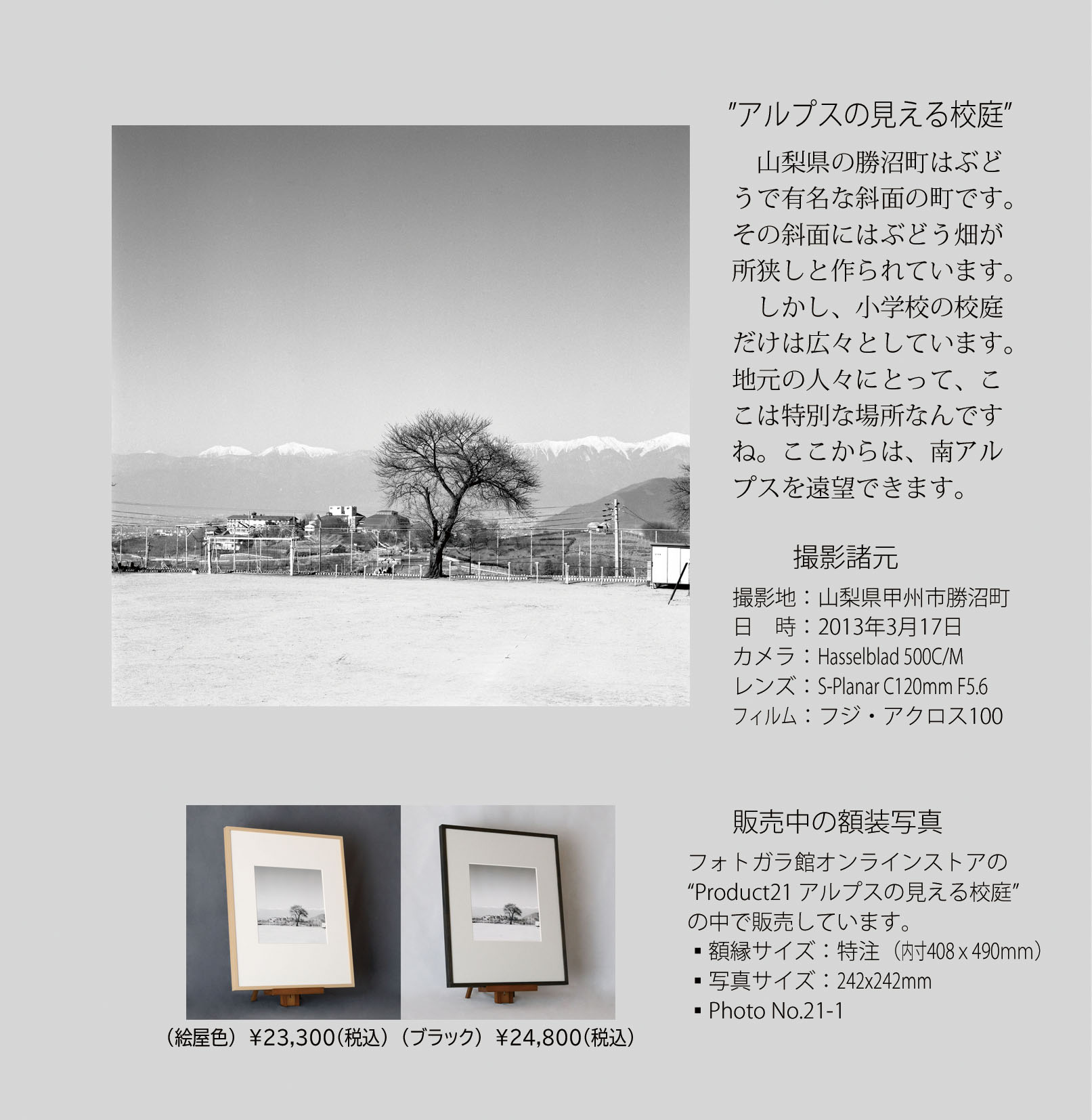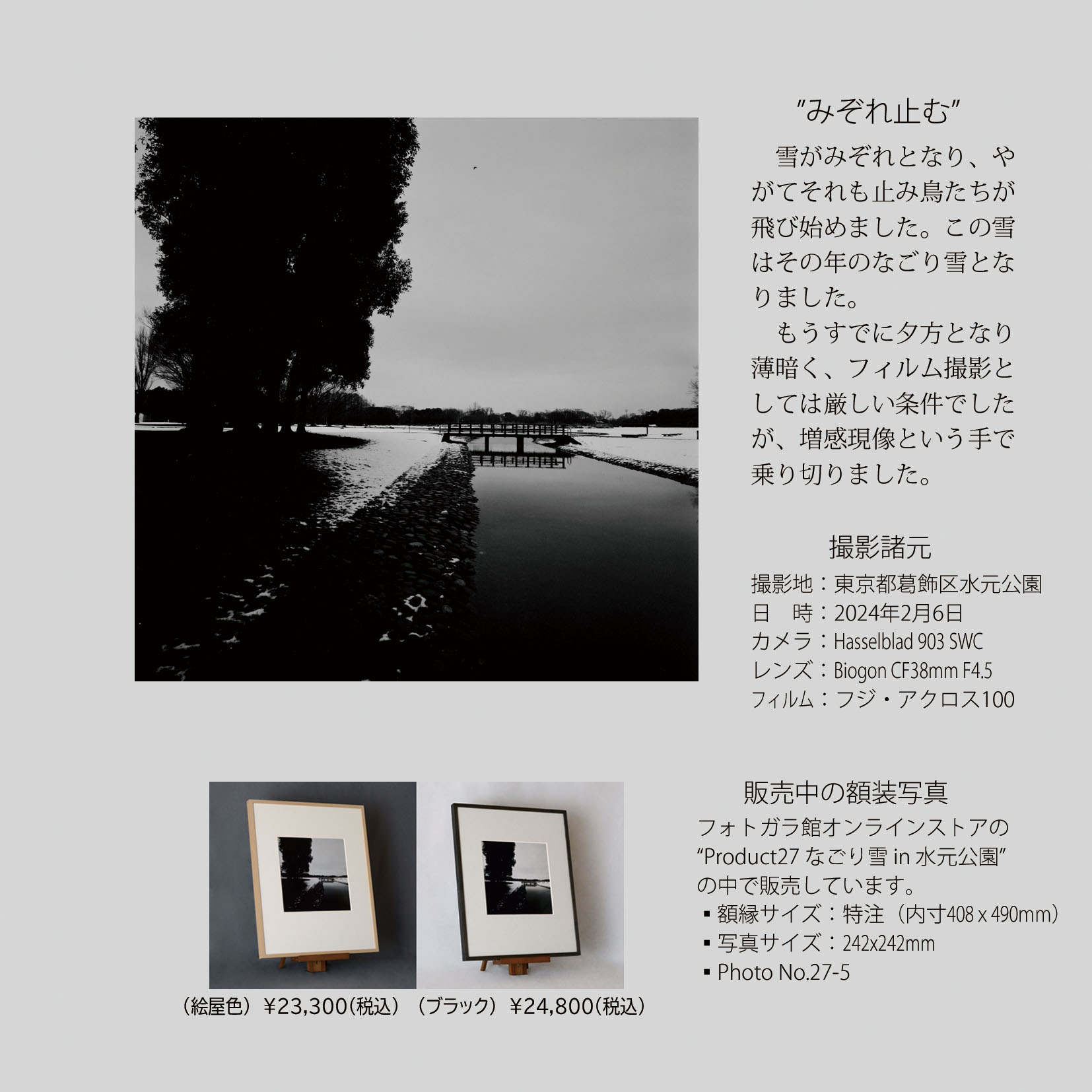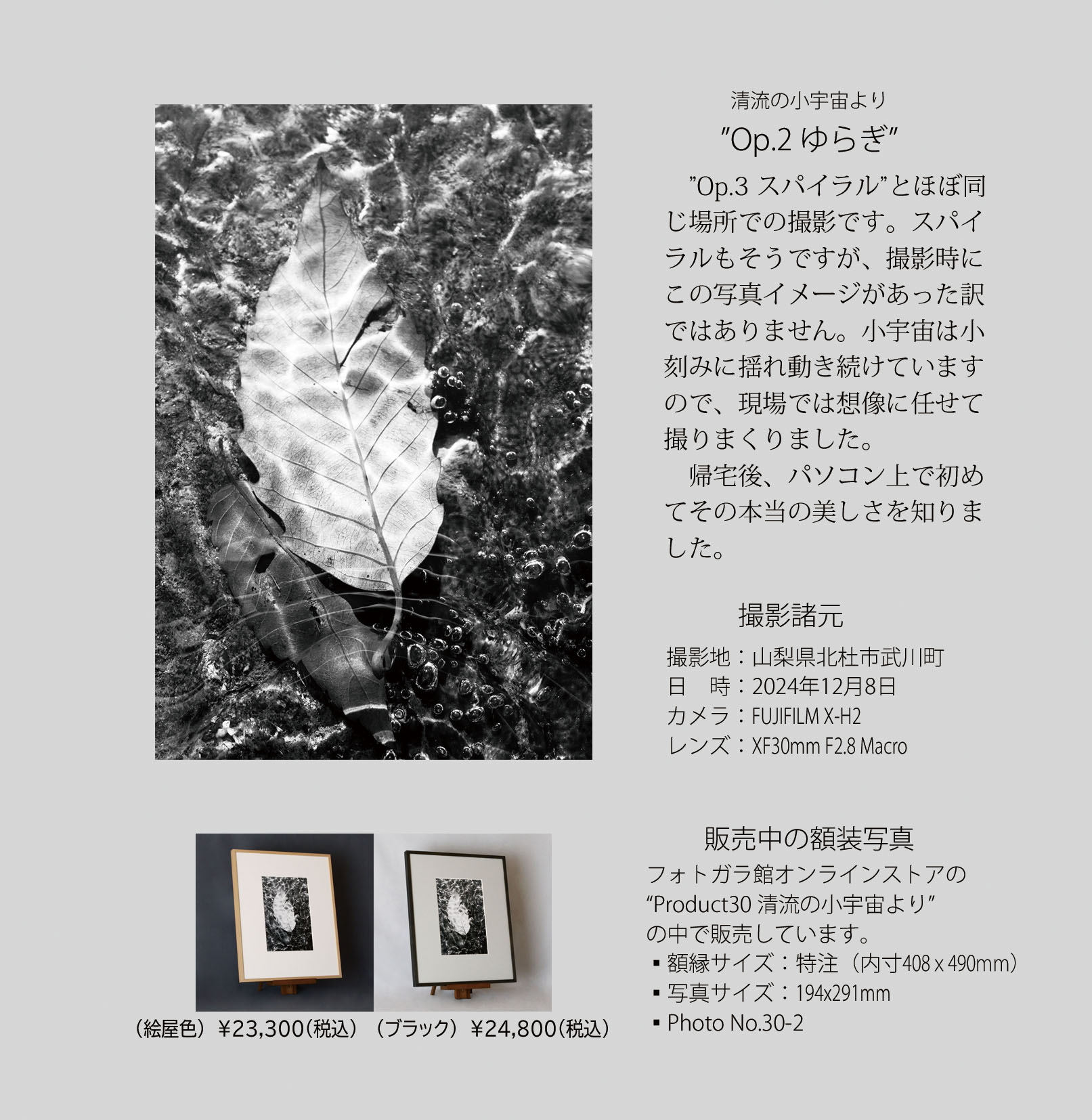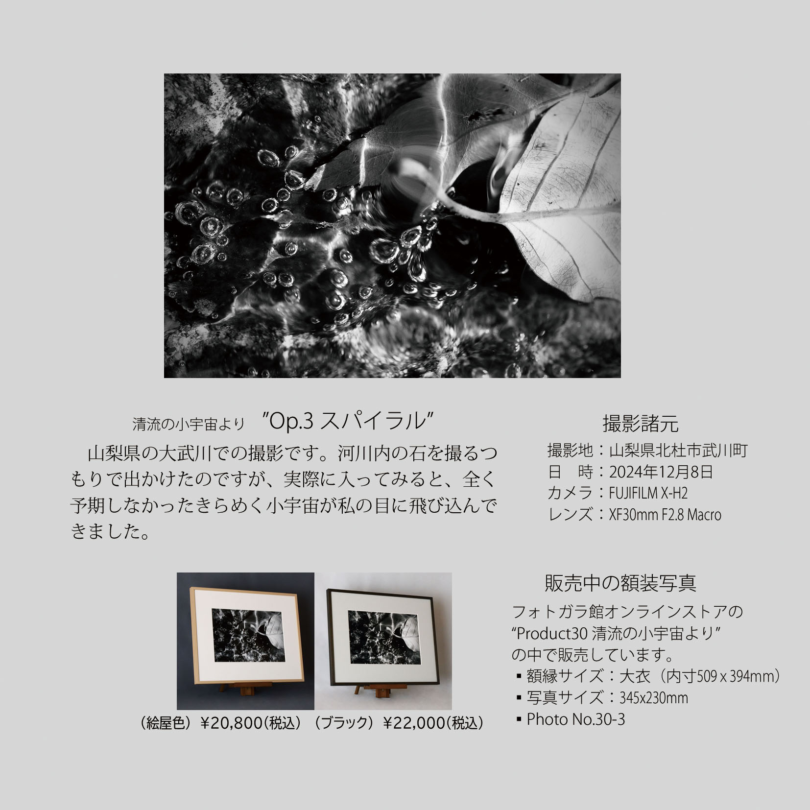 《フォトガラ館・掲示板》■2025/09/29:左メニューの欄に《写真の基礎》を追加しました。■2025/09/27:左メニューの欄に《販売中の額装写真について》と《FOTOGARA Leaflet》を追加しました。■2025/07/30:ポートフォリオサイトを開設しました。■2025/07/30:オンラインストアで販売する商品を大幅に増やしました。■2025/07/30:これまでのサイト構成を、より分かりやすくするために大幅に変更しました。■2024/11/02:メンテナンス等のため、当面の期間ストックルームをクローズします。■2024/10/13:本日、フロントページのレイアウト変更を行いました。■2024/10/08:10月13日のAM、メンテナンス等のためにフロントページをクローズします。■2024/08/20:本日フォトガラ館は開設一周年を迎えました。■2023/11/01:フォトガラ館のロゴマークを作りました。■2023/10/15:Product1ストリートライトの6作品の販売を中止しました。■2023/09/17:本日より、一つであったオンラインストアをオンラインストア1とオンラインストア2の2サイト構成としました。■2023/08/20:サイト「フォトガラ館」は、本日(2023/8/20)オープンしました。